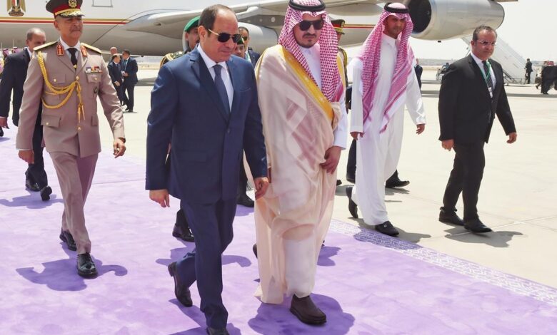 وقالت الصفحة عبر تغريدة نشرتها، اليوم الخميس: “الرئيس المصري يصل إلى جدة للمشاركة في القمة العربية الـ32، وكان في استقباله سمو نائب أمير منطقة مكة المكرمة”.