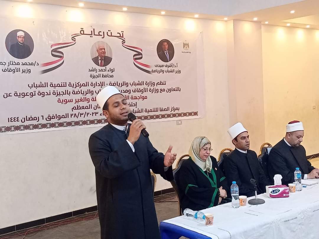 اطلقت وزارة الشباب والرياضة من خلال الإدارة المركزية لتنمية الشباب-الإدارة العامة للبرامج الثقافية والفنية، بالتعاون مع وزارة الأوقاف و مديرية الشباب والرياضة بمحافظة الجيزة، أولى سلسلة ندوات التوعية، التي يتم تنفيذها تحت شعار “تصحيح المفاهيم المغلوطة وغير السوية”؛ احتفالاً بشهر رمضان، ذلك بمركز الصفا للتنمية الشبابية.