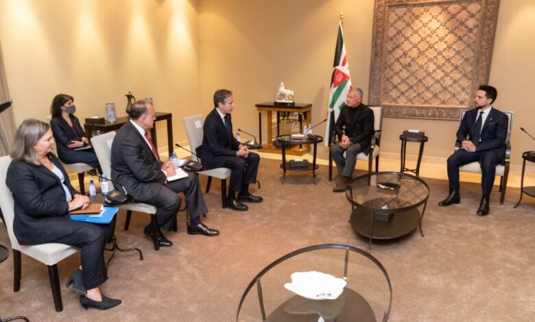 اذاع التليفزيون الأردنى، اليوم الأحد، تحذير العاهل الأردنى الملك عبدالله الثانى خلال لقائه بوزير الخارجية الامريكى أنتونى بلينكن من خطورة إستمرارالحرب الإسرائيلية على غزة، والتداعيات الكارثية لإستمرار الحرب.