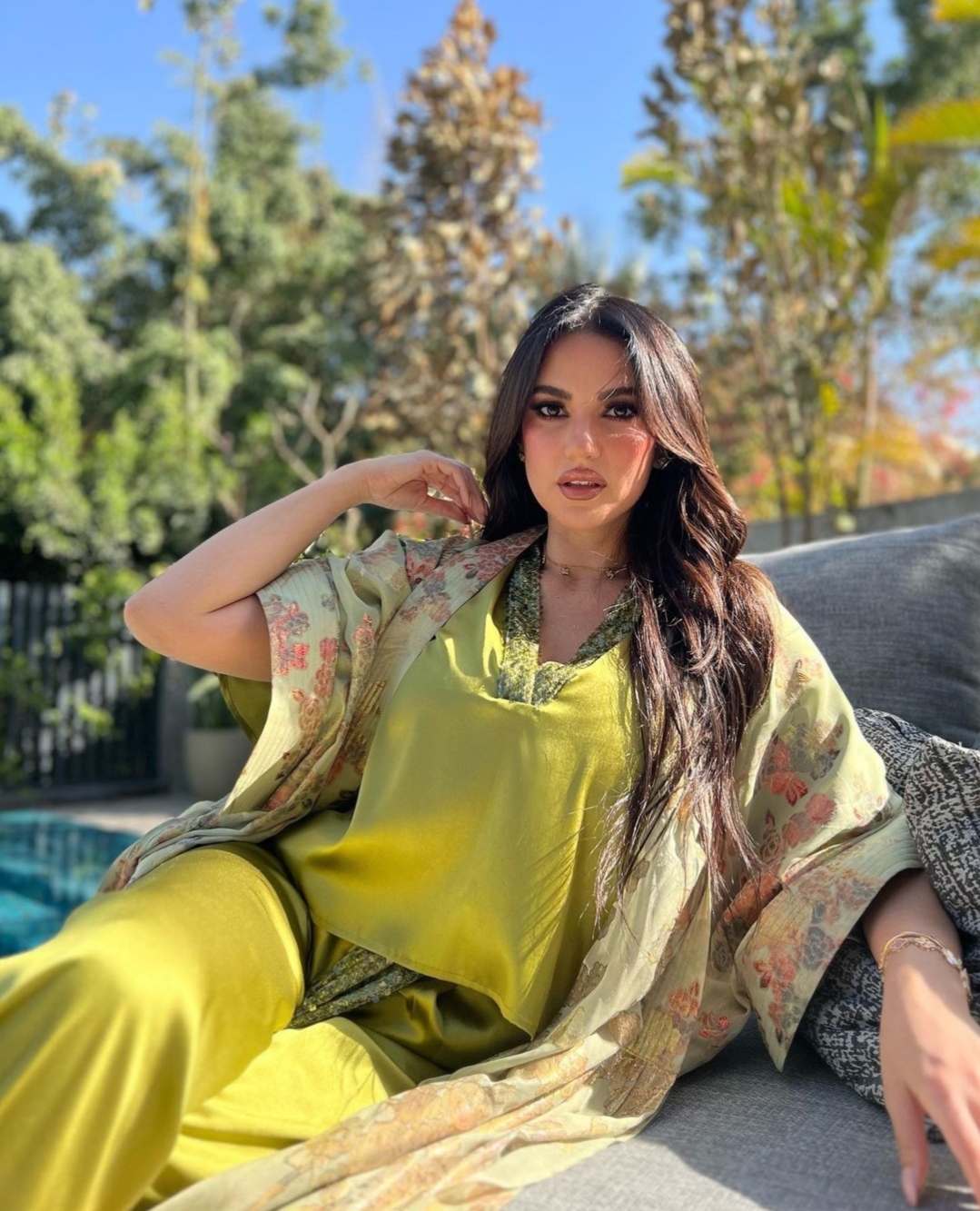الصور في اخر ظهور لها بإطلالة رمضانية صيفية باللون الاخضر.