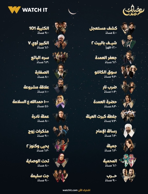 ويذاع على منصة “Watch it” الرقمية عدد من المسلسلات التي تعرض في الماراثون الرمضاني الحالي، أهمها: مسلسل “كشف مستعجل” والذي يعرض في تمام الرابعة مساءً، بطولة مصطفى خاطر، وإخراج شادي الرملي.
