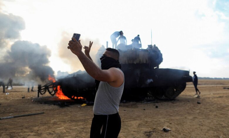 أطلق مقاتلو حماس آلاف الصواريخ وأرسلوا عشرات المقاتلين إلى البلدات الصهيونية القريبة من قطاع غزة في هجوم مفاجئ غير مسبوق في الصباح الباكر خلال عطلة يهودية كبيرة يوم السبت، مما أسفر عن مقتل العشرات وصدمة البلاد. وقالت إسرائيل إنها الآن في حالة حرب مع حماس وشنت غازات جوية على غزة، متعهدة بإلحاق “ثمن غير مسبوق”.قال رئيس الوزراء الإسرائيلي بنيامين نتنياهو لشعبه في خطاب على التلفزيون إن الحرب ضد حركة حماس المسلحة، التي شنت توغلاً مفاجئاً داخل إسرائيل يوم السبت، سوف “تستغرق وقتاً”.