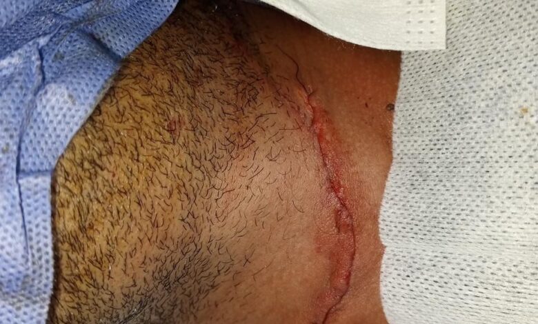 ومن جانبه قال الدكتور إسلام عامر استشاري ورئيس الفريق الطبي، ان العملية الجراحية تم خلالها ربط الأوردة والأنسجة المتهتكة والعضلات و عمل الخياطة للجرح بعد تخديره كلياً، مضيفاً ان المريض استطاع تناول السوائل بعد ساعة والأكل بعد ساعتين وغادر الي منزله بسلام، موجهاً شكر لرئيس الوحدة الدكتور احمد جابر، ولفريق التخدير والهيئة التمريضية.
