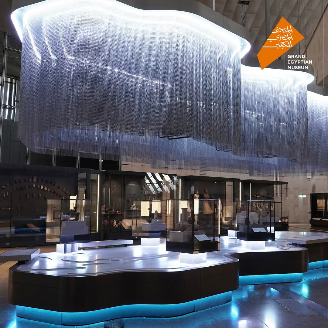 يقع بالقرب من أهرامات الجيزة، ويمتد على مساحة تقارب 500 ألف متر مربع، ويضم المتحف أكثر من 100 ألف قطعة أثرية، من أبرزها مجموعة الملك توت عنخ آمون الكاملة لأول مرة في مكان واحد.